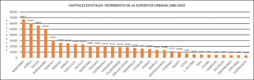 A partir de estos datos se explica por qué la exorbitante expansión territorial de las ciudades mexicanas, en este proyecto las 31 zonas conurbadas capitales estatales siguen generando nuevas y constantes periferias urbanas mostrando el fracaso de las instituciones estatales creadas para la planeación urbana en el país desde 1976 como: Secretaría de Asentamientos Humanos y Obras Públicas (SAHOP), Secretaría de Desarrollo Urbano y Ecología (SEDUE), Secretaría de Desarrollo Social (SEDESOL) y Secretaría de Medio Ambiente y Recursos Naturales (SEMARNAT).